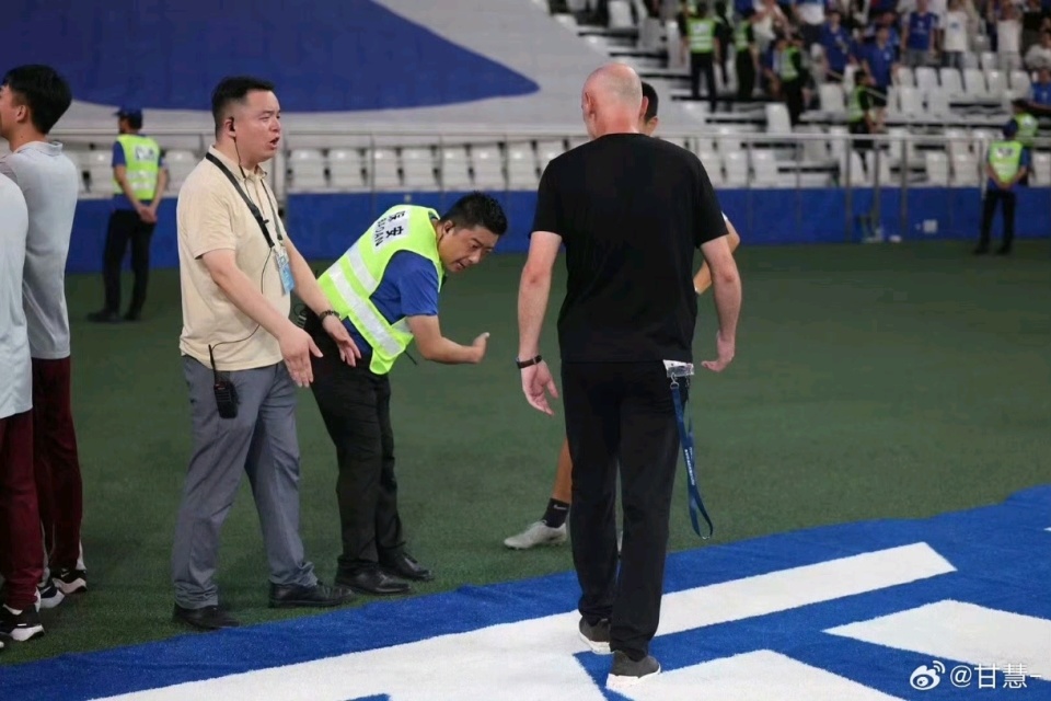 一名申花的“记者”(有说是申花球迷会的人)持媒体证进入内场,拦住穆斯卡特表达不满,被海港工作人员隔开之后,他仍然不依不饶,嘴里骂骂咧咧的,也激怒了海港的工作人员。