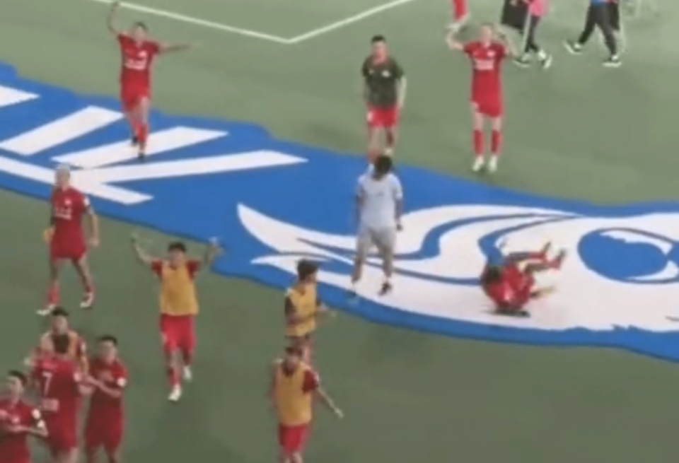 海港冤枉?美女记者受伤原因曝光 球迷:河南外援在申花队徽上打滚
